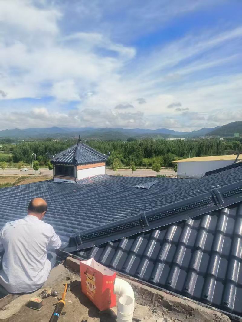 樹脂瓦質(zhì)地輕盈,板與板敲擊有煩悶感;偽劣拷貝樹脂瓦用手掂有沉重感。板與板敲擊聲音洪亮。