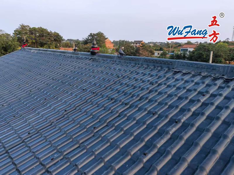 合成樹脂瓦的建筑簡易,施工期短:所有構件均在工廠預制的完成,現(xiàn)場只需簡單的一種拼裝,從而大大縮短了施工的具體周期,一座大約6000平方米的建筑物,只需大概40天即可基本安裝完成。